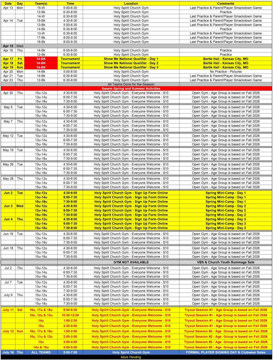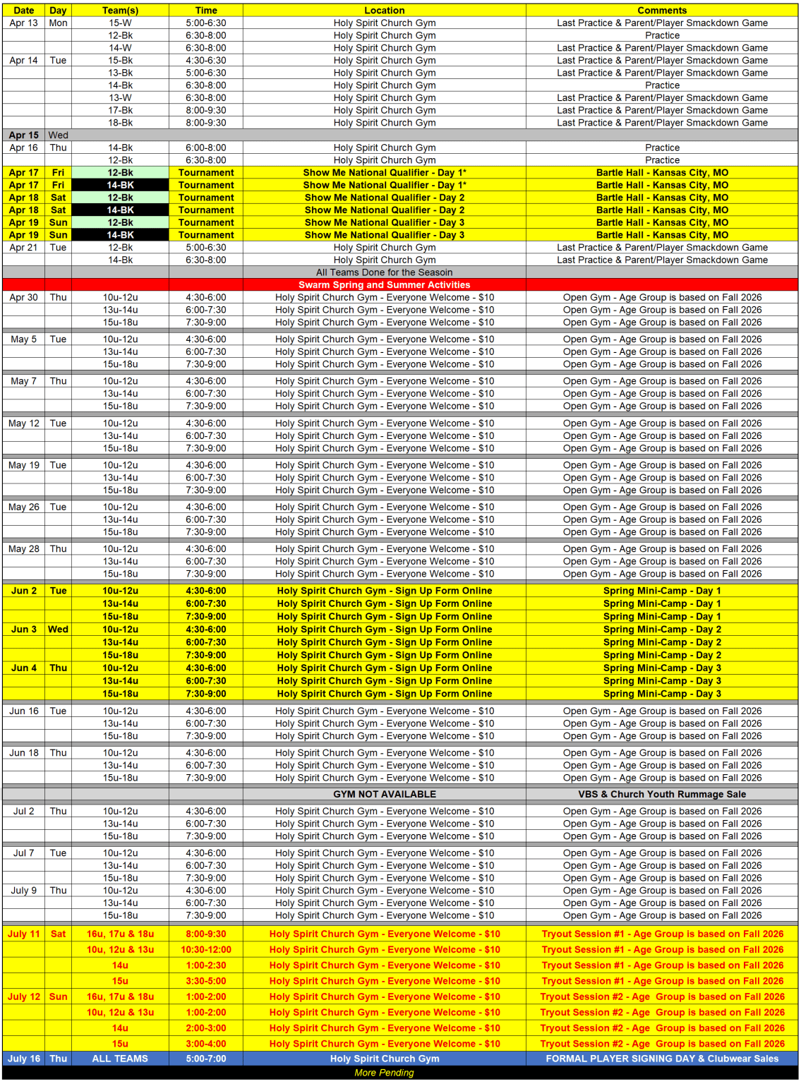 Email swarmvolleyballkc@gmail.com for early announcements of camps and other opportunities!